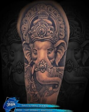 - Dot and line work Ganpati tattoo made by Rahul Gaikwad at Tattoo Ashram, Vashi Navi Mumbai India.