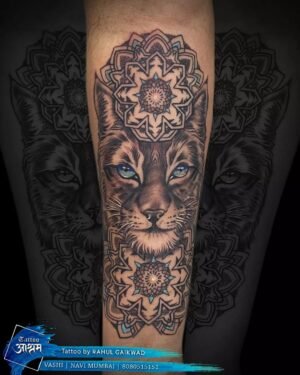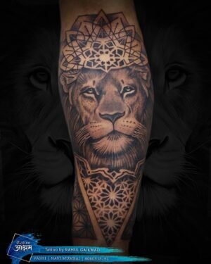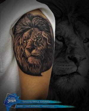 - Customized Lion Tattoo Touch Up/ Cover Up Tattoo on Arm, This Tattoo was made by Rahul Gaikwad at Tattoo Ashram, Vashi Navi Mumbai India.
