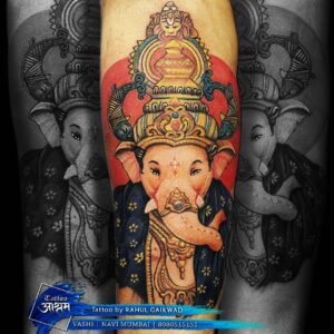 - Dot and line work Ganpati tattoo made by Rahul Gaikwad at Tattoo Ashram, Vashi Navi Mumbai India.